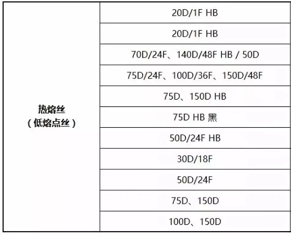 熱熔絲,又稱低熔點(diǎn)纖維,是今年來發(fā)展最為迅速的功能性纖維之一。熱熔絲分為滌綸熱熔絲和錦綸熱熔絲兩種,可通過調(diào)整原料特性,將熔點(diǎn)控制在85℃至180℃之間。